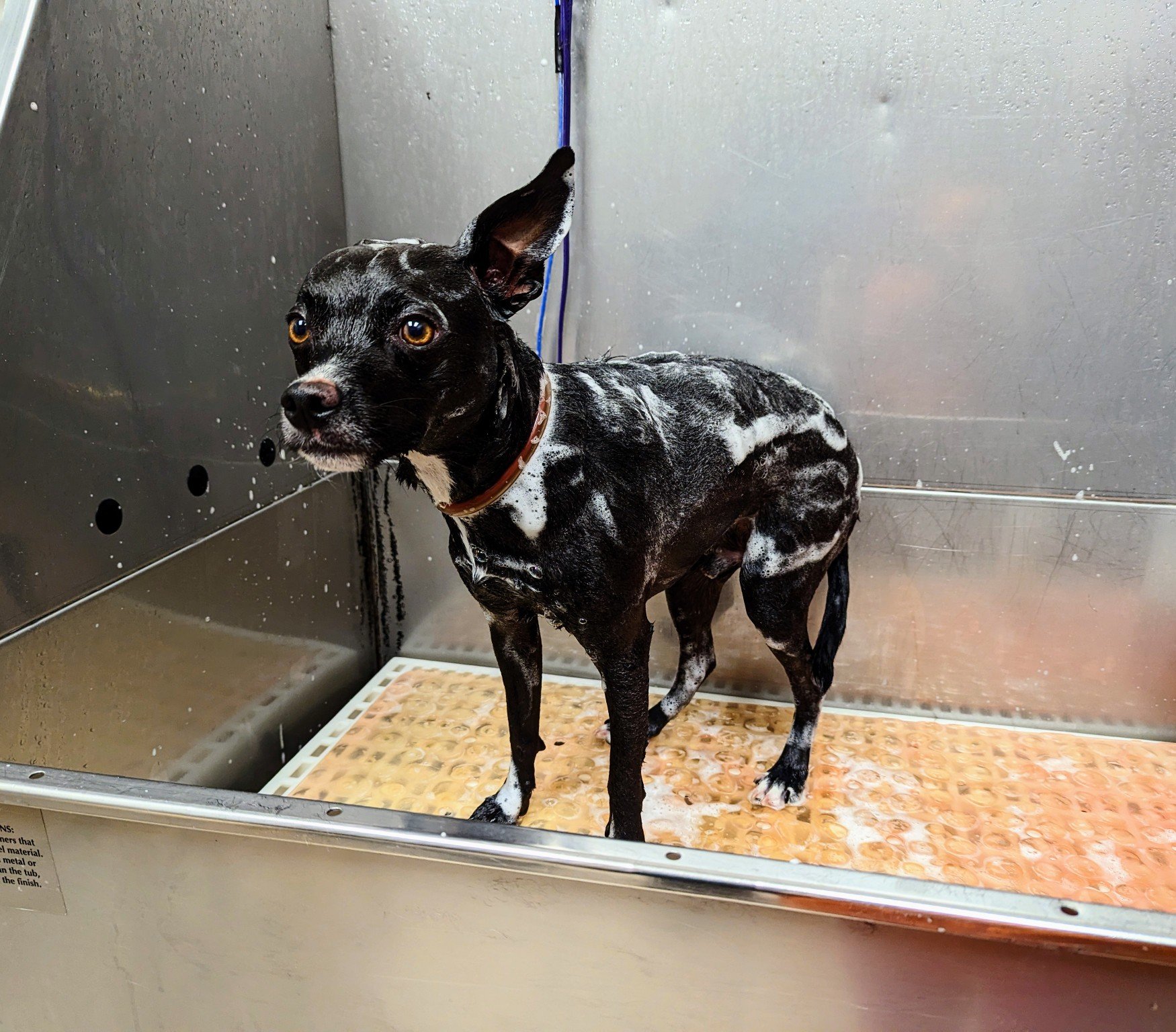 Our dog bath service in Syracuse includes: Two washes with premium shampoo, drying either by hand or by fan depending on the dog’s temperament, nail trimming and grinding, ear cleaning and brush out. Bath appointments generally take forty-five minutes for short hair dogs, up to 2 hours for long haired dogs.